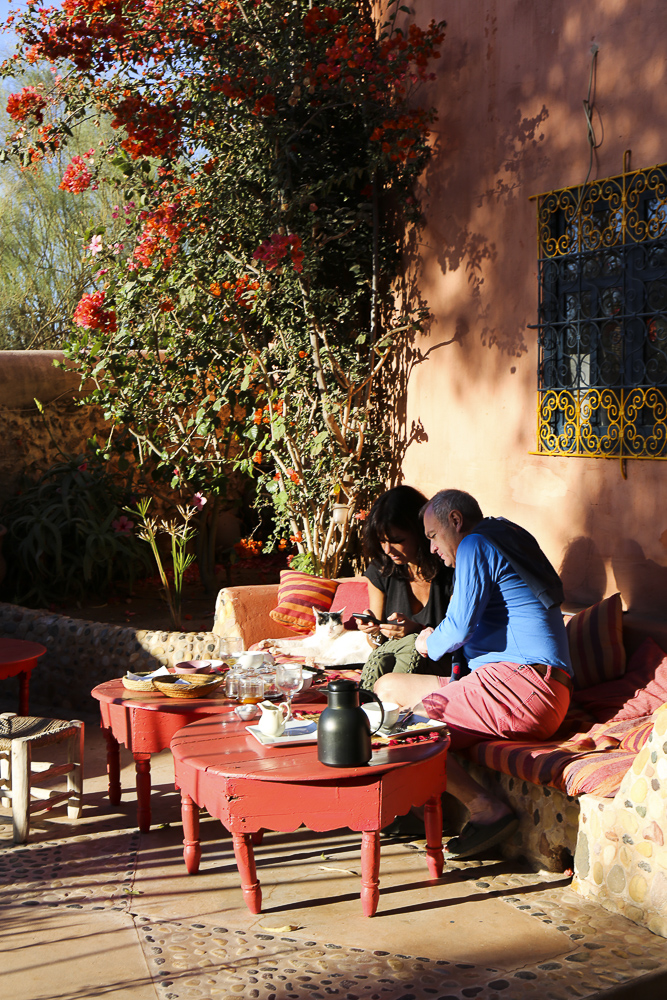 At Riad Baoussala you feel more like visiting friends than in a guesthouse. About 9 km outside Essaouira and only accessible via an adventurous gravel road, the Frenchwoman Dominique has created a place to come down and relax. For dinner, one meets together in the inner courtyard and during the day, one has the choice between the beach, the hammock at the pool or, nevertheless, rather the deck chair on the roof terrace. The guesthouse is maintained in a very environmentally conscious way, a matter close to Dominique’s heart – for example, the hot water is heated by a biomass boiler.
