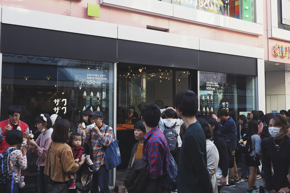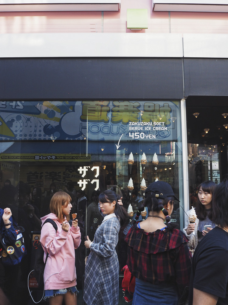The area around Zaku Zaku is a good example of the Kawaii culture in Japan. Kawaii calls itself everything that is cute, childish, sweet. So everything colourful, shrill and playful awaits you there. Not to be missed, of course, are the equally colourful and multi-faceted waffle creations. Pure sin, but you shouldn’t leave Tokyo without having a bite to eat at Zakuzaku. The delicious dessert catapults all sweet toothers with the vanilla cream filled crispy croquant chou into the Foodie sky. Attention, addiction potential, the queue of 5 to 10 minutes is still worth it.