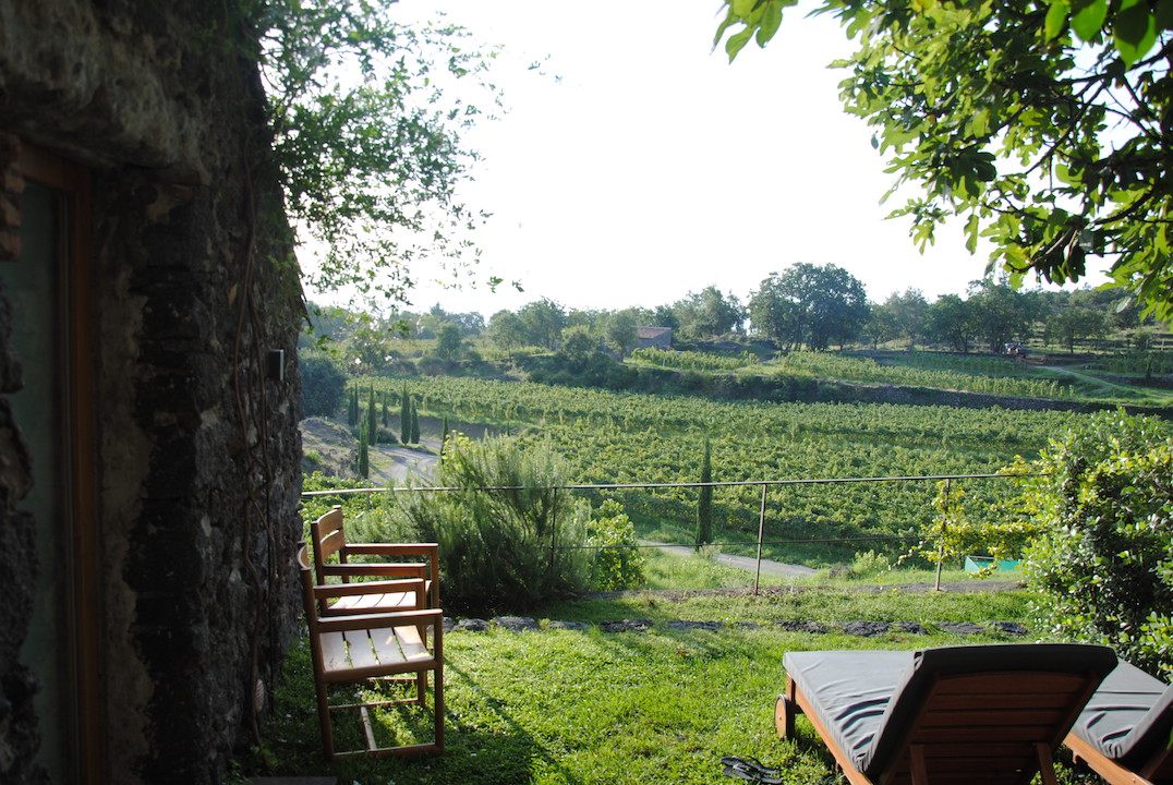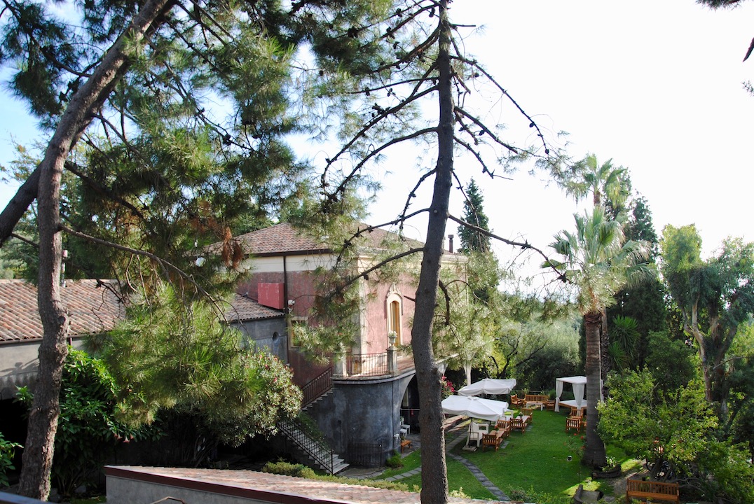 Die Villa Monaci delle Terre Nere ist ein faszinierendes Gebäude, wie ein alter Palazzo – ein wenig morbid und ehrwürdig zugleich – thront sie am Fuße des Ätnas. Hinter den Steinmauern finden Liebhaber der Sinnlichkeit und Ästhetik ihr Glück. Freigelegte, schwere Mauern aus Vulkangestein treffen auf feines, modernes Mobiliar, Holzbalkendecken und elegante Zimmer. Besonders das Zimmer mit Blick auf das historische Weingut ist ein Traum. Doch überhaupt die Aussicht ist genial. Vom Monaci delle Terre Nere hat man einen herrlichen Blick auf den Ätna, die Weinberge und das türkisblaue Mittelmeer. Für den besonderen Spirit in dem Hotel ist das wunderschöne Paar Ada und Guido verantwortlich. Ein gutes Beispiel, wie wichtig es ist, dass die Betreiber vor Ort und mit den Gästen in Kontakt sind. Das Frühstück wird einzig und allein von der eigenen Farm generiert samt Feigen, Pfirsichen und Käse, besonders schön präsentiert. Und der üppige Garten? Hier lässt es sich wunderbar Nichtstun und am Pool chillen.