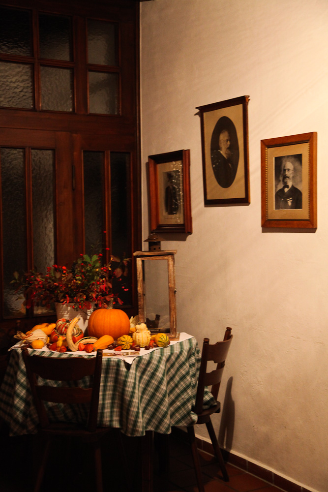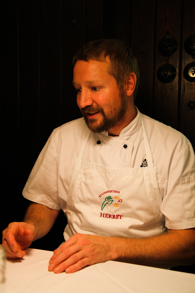 Das gute Essen unterstützt dieses Gefühl mit frischer, aromatischer Kürbissuppe, gebackenem Kalbskopf, der ganz fein paniert und wunderbar würzig ist. Die Spinatknödel mit Tomaten-Salbenbutter und Parmesan kommen sehr leicht daher. Besonders zu empfehlen ist die Renke, die mit perfekt zarter Salzkruste, Knoblauch und Zitrone das beste ist, das wir gegessen haben.
